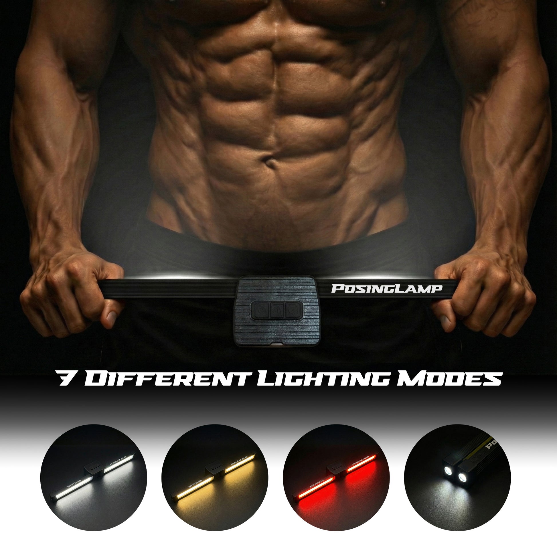 With its strong magnetic base, the PosingLamp attaches effortlessly to any gym equipment, allowing you to angle your lighting from every side. Illuminate every pose and angle without limits.